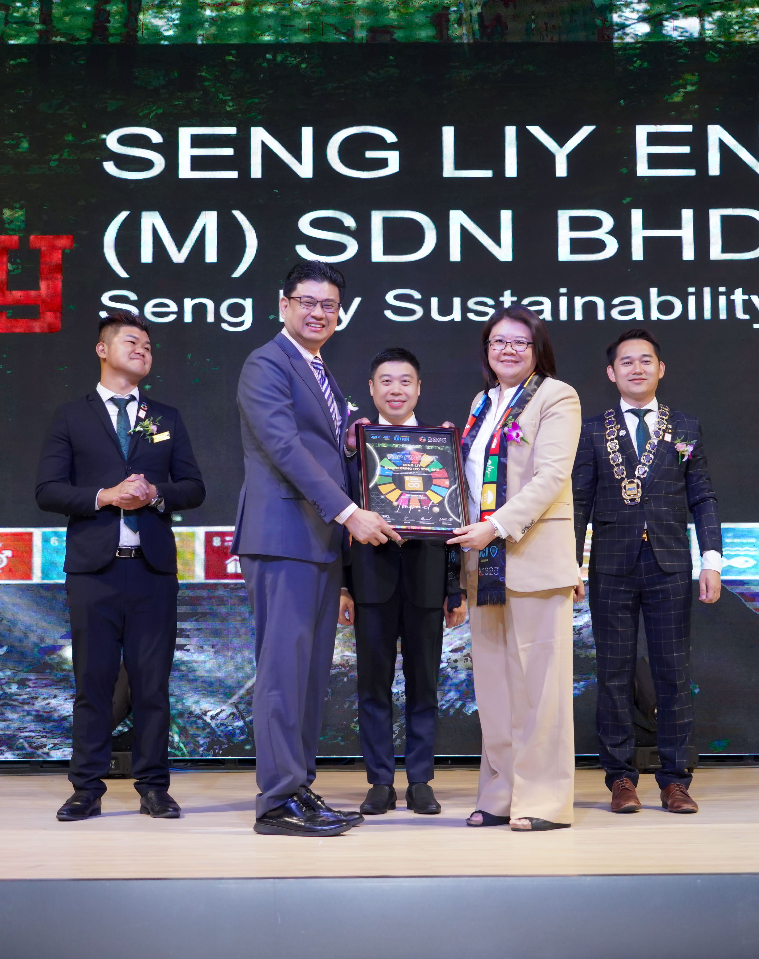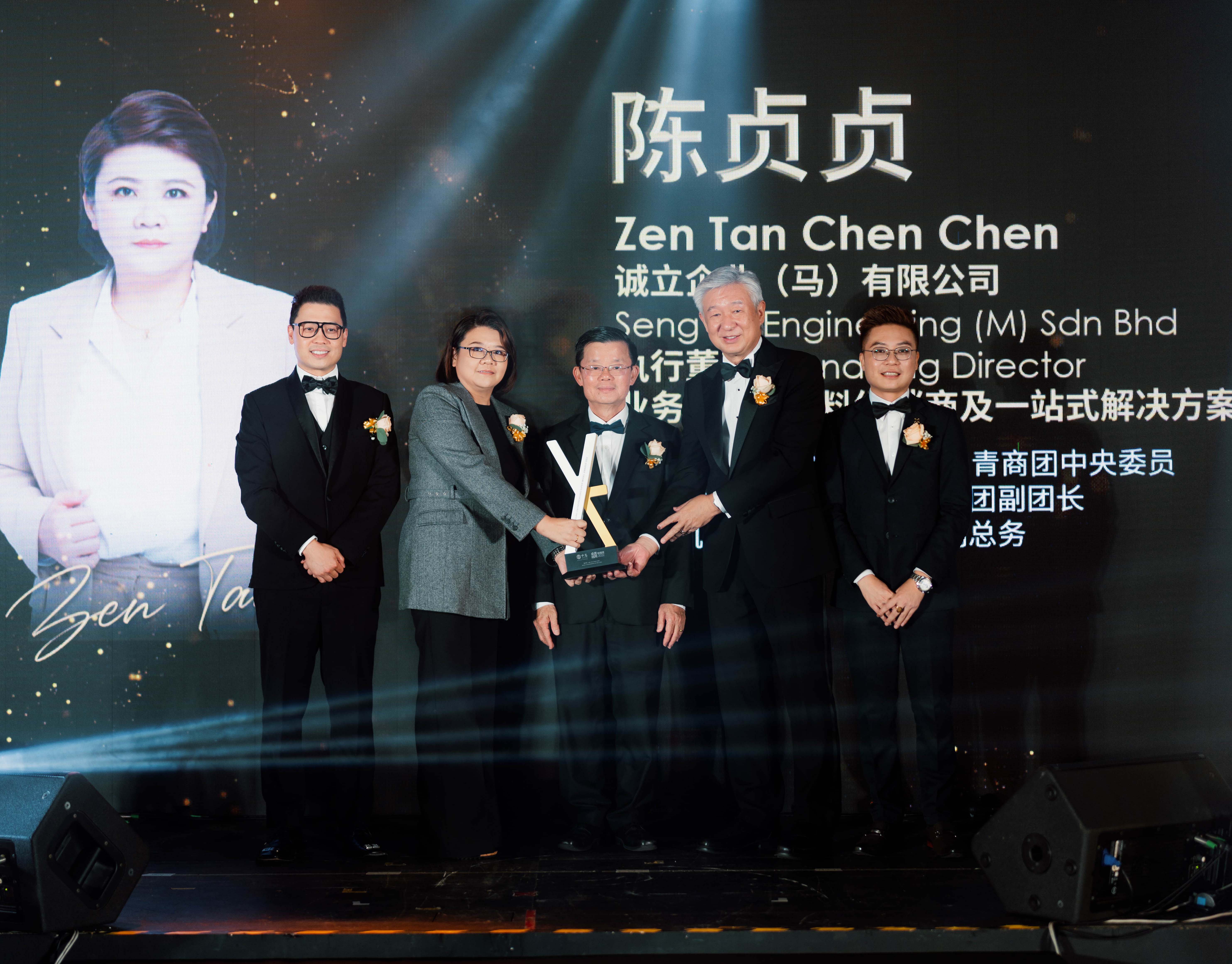 陈贞贞:,现为Seng Liy Holdings有限公司首席执行官(CEO),担任新山中华总商会青商团·团长,柔佛中华总商会青商团·副总团长;新山中华总商会董事;马来西亚中华总商会青商·中央委员。2013 年成立建材公司开启创业路,从代理商起步,逐步迈向自主生产制造。她极具战略眼光,逆势扩充业务。其带领的诚立集团专注绿色建材,推动木塑复合材料等绿色产品发展,产品获多国绿色认证。她凭借前瞻性的战略布局,积极推动策略性合作,奠定了集团在东南亚及国际绿色建材市场中的领先地位。